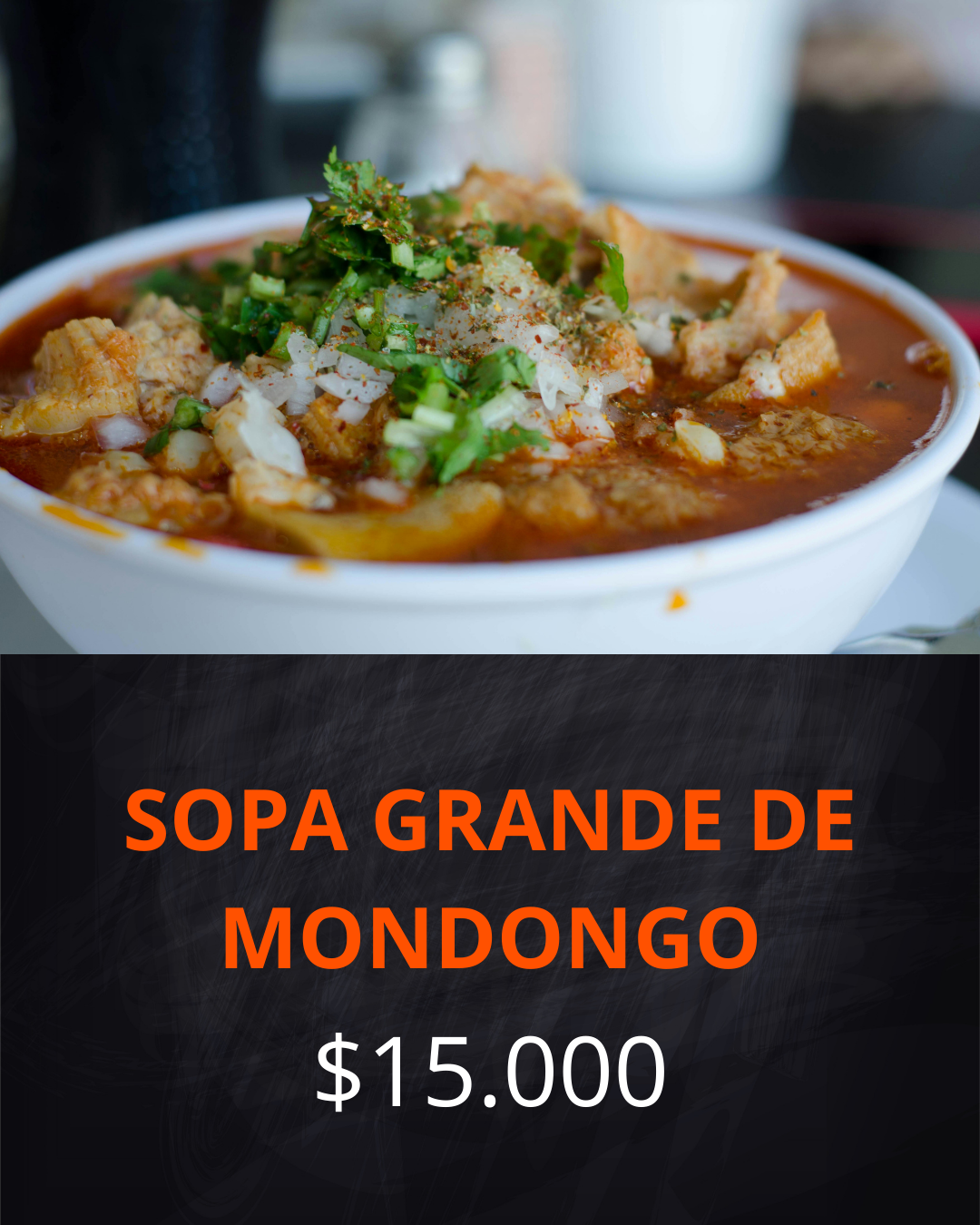 (Incluye sopa, arroz, ensalada, yuca y/o patacón o tajadas de maduro)