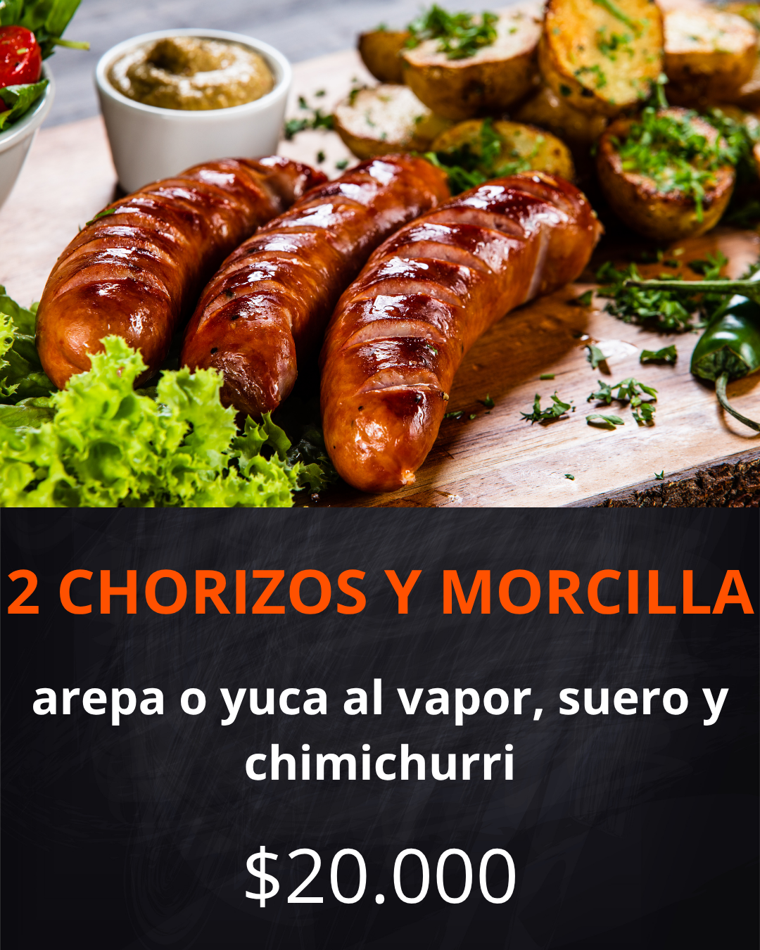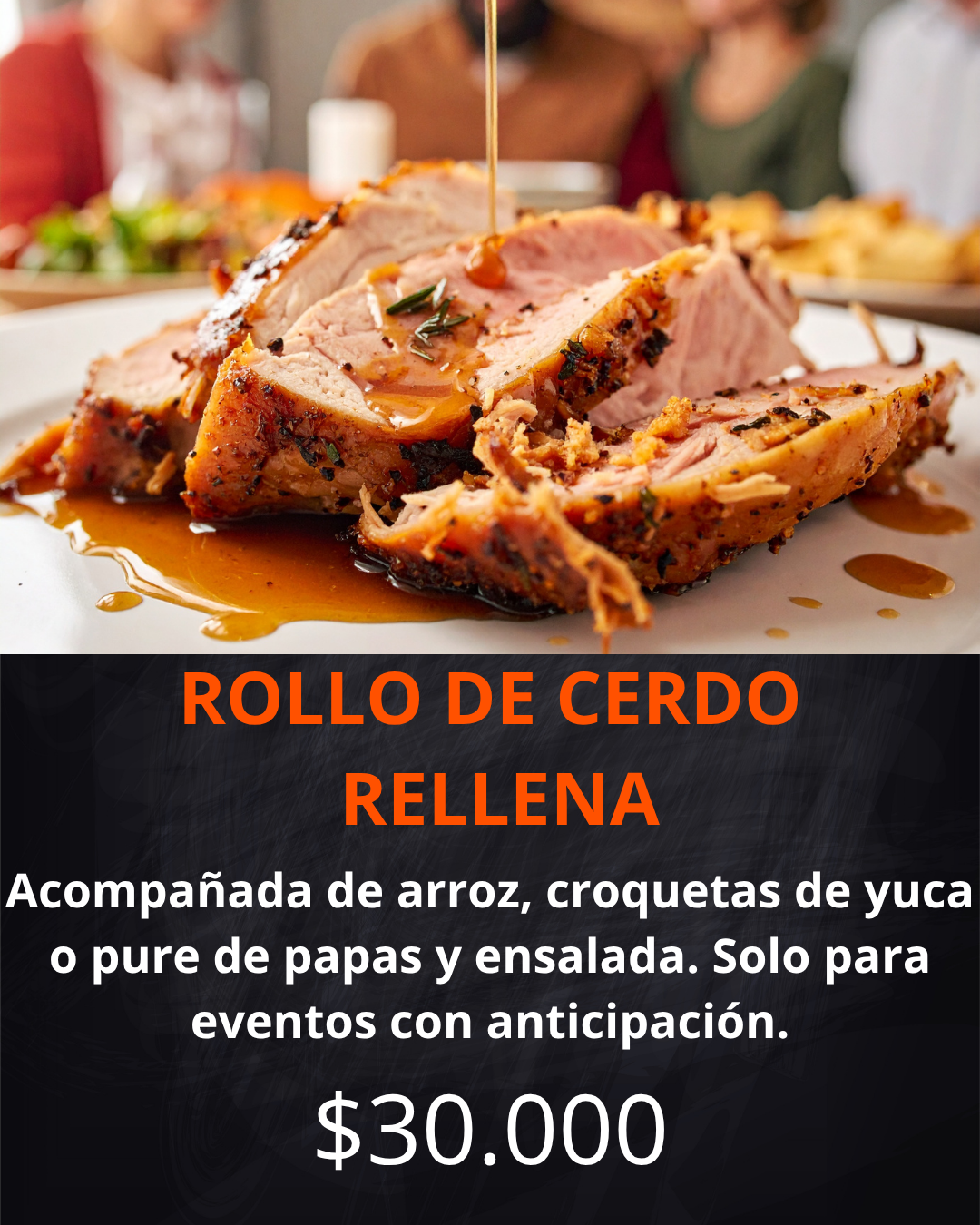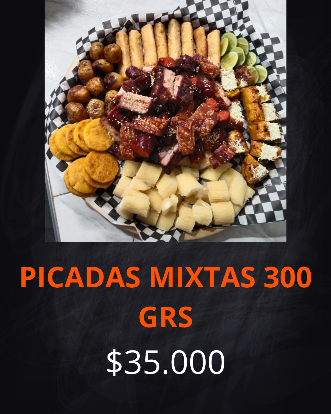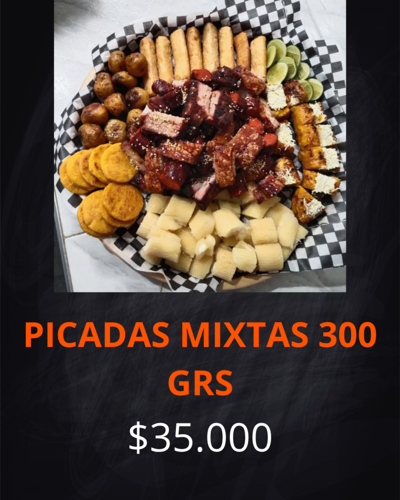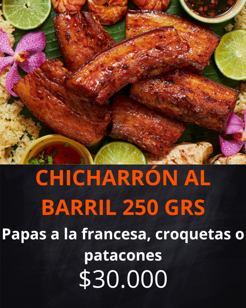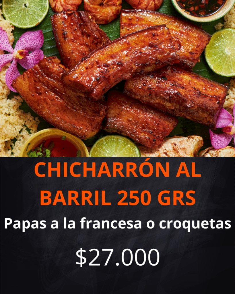 Contiene: Cerdo al barril, chorizo, morcilla, yuca al vapor, papas a la francesa, croquetas de yuca, maduro con queso, arepa